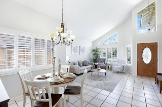 Plantation shutter창문이 많고 천정이 높아 집 전체가 밝고 탁 트인 느낌이 듭니다. 현관으로 들어서면 밝은 거실과 다이닝 룸이 있습니다. 그레나이트 카운터, SS 가전제품,